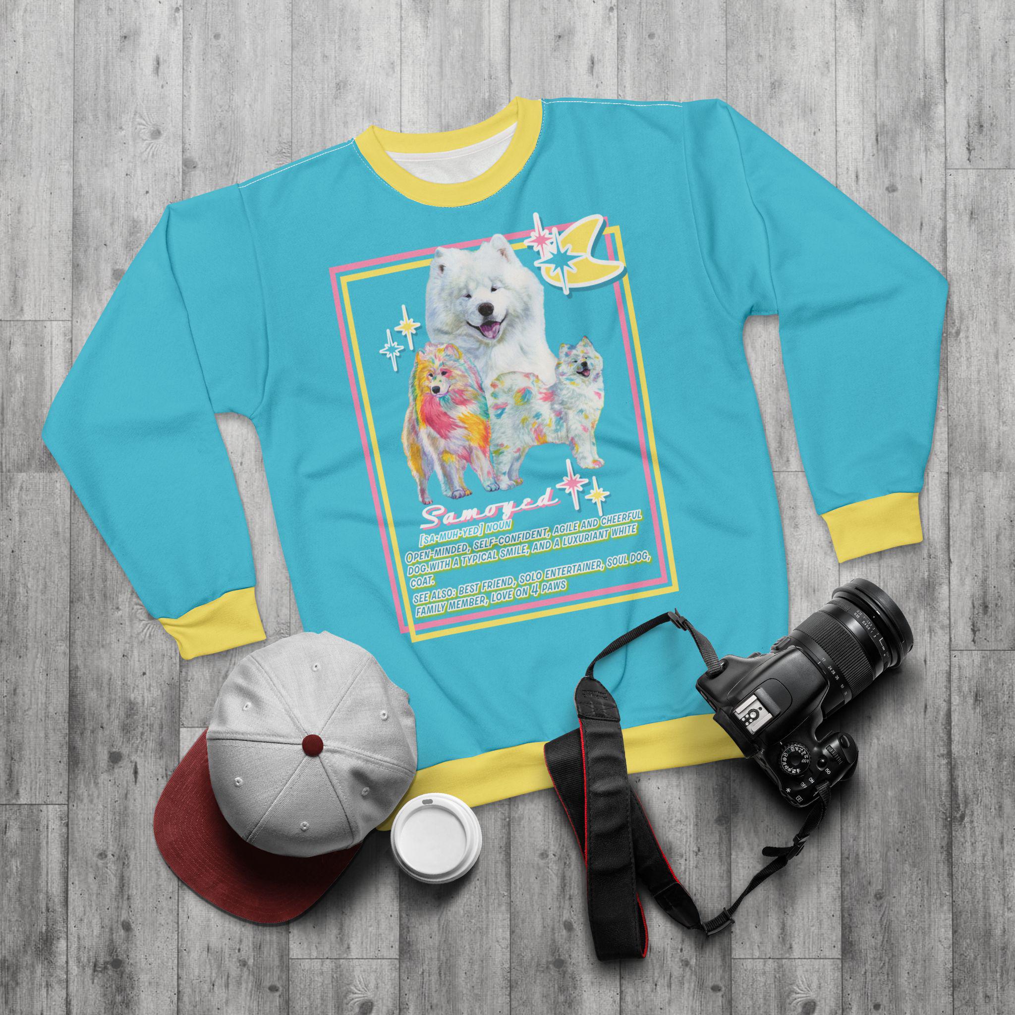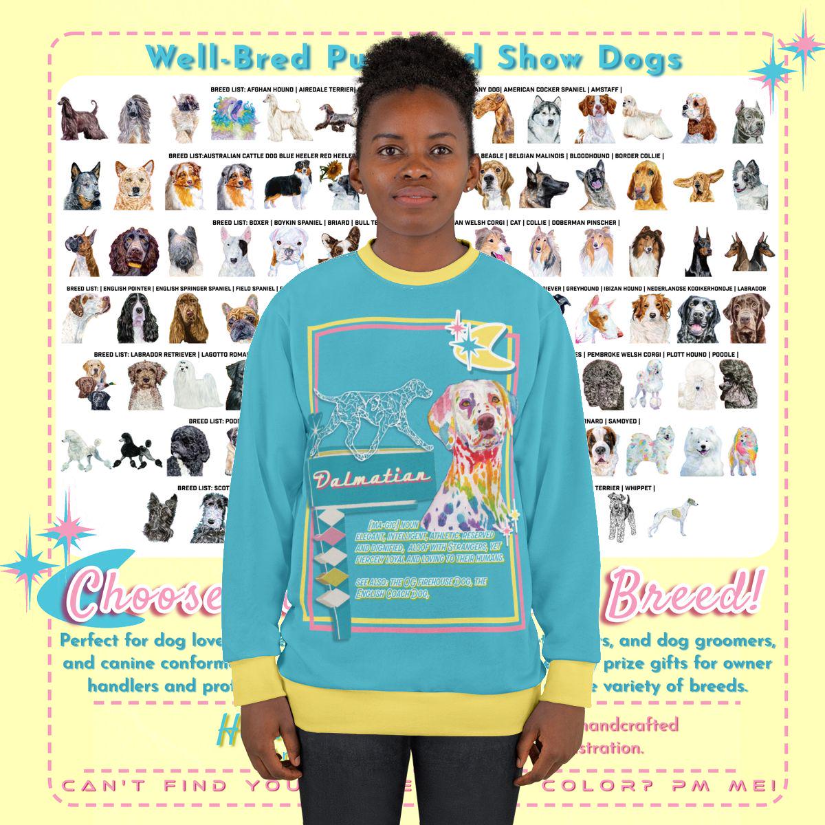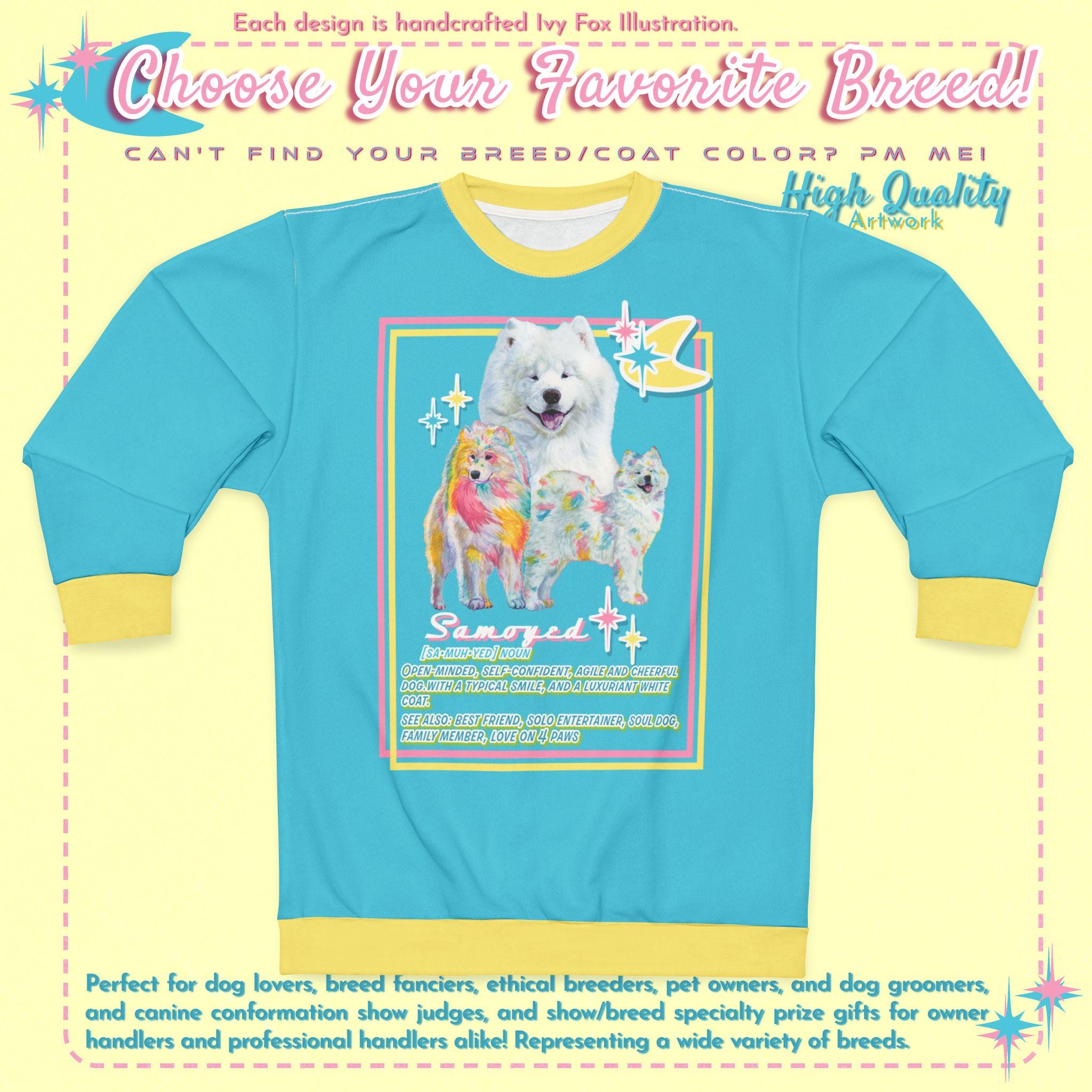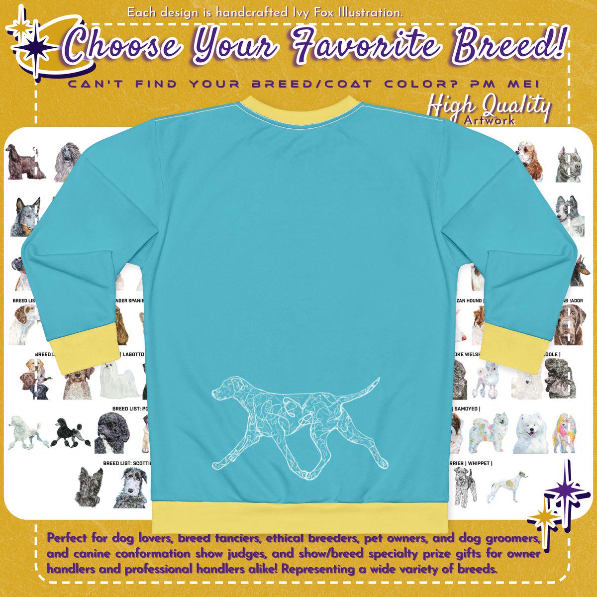 Colorful Retro futurism Dog Breed Sweatshirt with a space age art design featuring mid century modern starburst boomerang. Perfect for dog lovers looking for unique gifts. Adds a vibrant and stylish vibe to any outfit, suitable for casual wear or as a statement piece. Ideal for holidays, birthdays, and special occasions. This is the perfect accessory for dog lovers, breed fanciers, ethical breeders, pet owners, and dog groomers, and canine conformation show judges, and would be useful show/breed specialty prize gift for owner handlers and professional handlers alike! It is suitable for birthdays, holidays, dog shows, and dog sporting events. Perfect for the dog person who has everything.